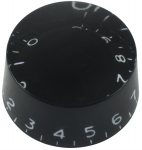 Gibson style black speed knob with embossed numbers. For 6mm 24 teeth knurled shaft.