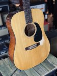 Very good condition featuring dreadnought body shape, Sitka spruce top with decorative soundhole rosette, mahogany back and sides, East Indian rosewood bridge, black pickguard, multiple bindings on the top body edges, black binding on the back body edge, mahogany neck, East Indian rosewood fingerboard with pearl dot inlays starting at the fifth fret, 1 11/16" nut width, East Indian rosewood peghead overlay with gold CF Martin & Co logo, Grover Rotomatic tuning machines, and tweed covered hard shell case with a makeshift rubber handle that works well.