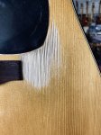 This 1971 Martin D-18 is in very good cosmetic condition and is set up in great playing order. The guitar has a low saddle and the action is very comfortable. Glaser Instruments in Nashville, Tennessee, has just completed a professional set up, replaced the first three frets, pleked all the frets, and reglued and repaired small pickguard cracks. There is significant pick wear beside the pickguard and a hole remains on the heel of the neck from the removal of a strap button which could easily be reinstalled. The bridge has been cut down from the top (see photos) and shows an extremely slight amount of lifting (barely enough space for a piece of paper to slide under 1/16") which does not require a reglue at this time. Although the pickguard cracks have been repaired and the pickguard has been reglued, there is still a slight waviness to the guard which doesn't affect the sound or playability. The guitar is overall in very clean vintage condition.