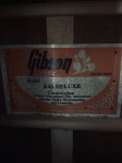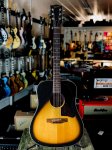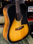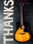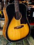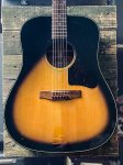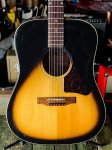 Very good condition featuring square shouldered dreadnought body, solid Sitka spruce top with tobacco sunburst finish, solid mahogany back and sides, multi bound tortoiseshell grain and white top edges and single bound tortoiseshell grain back edges, decorative soundhole rosette, elongated tortoiseshell grain pickguard, rosewood belly bridge with original rosewood bridge pins and bone saddle, three piece mahogany neck, Indian rosewood fingerboard with mother of pearl dot inlays starting at the third fret, bone nut, enlarged Gibson open book peghead shape, black peghead face with Gibson gold block logo, single ply bell shaped truss rod cover, three per side Kluson Gibson Deluxe tuning machines with metal tulip buttons, serial number and Made in USA impressed into the back of the peghead, professionally installed LR Baggs pickup with endpin jack and black Guild hard shell case.