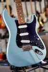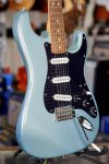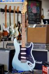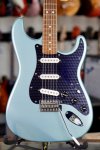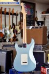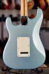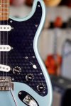 This 2002 Fender Standard Series Stratocaster is in excellent cosmetic condition showing only a few signs of play wear throughout including a finish ding on the back edge of the body (see photos). The neck on this instrument is that of a chunkier C shape. It is a tad bit flat in the middle with some nice shoulders and feels great in hand. The fret wire shows some signs of play wear but the frets have loads of life left in them and this guitar plays fantastic up and down the fingerboard. The original single coil pickups sound tremendous in this guitar and deliver crystal clear bell like tones in every position. These pick ups have quite a bit of character compared to some of the other models that I have played in the past and sound terrific through a clean or dirty amplifier. The tremolo bridge operates smoothly and the tuning machines are in perfect working order. The pickguard and knobs are later replacements but fit perfectly and look pretty cool with the Agave Blue finish. The Standard Series guitars are no longer being produced by Fender and have always been well regarded as quality workhorse instruments - this one is no exception. If you are looking for a great playing and sounding Stratocaster with a killer finish, this one checks all 3 boxes. A gem of a guitar shipped out safely and promptly from our little shop here in Clarksville, Tennessee, to your front door.