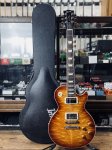 This Les Paul is in excellent cosmetic and playing condition. The neck profile on this guitar is that of a '60s profile and is exceptionally comfortable and fast. The back of the neck is nicely figured mahogany. The '57 Classic humbuckers sound fantastic (just like they always do) and offer a variety of Les Paul tones from classic to modern. The four push/pull pots really add to the experience. The locking Grover Rotomatic tuning machines keep this guitar in excellent tune and really make changing strings a breeze. The top on this guitar is highly figured and attractive giving lots of 3D motion in light. This Les Paul has virtually no signs of play wear. This instrument includes its original hard shell case, case candy, and paperwork. Weighing in at 8lbs 7oz, this Les Paul is a serious contender for anyone looking for a killer playing guitar or a show piece.