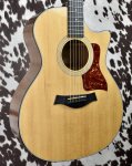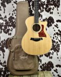 This 2013 Taylor 314ce is in overall good cosmetic condition showing signs that it has been played extensively including one top crack (not all the way through, but cosmetically apparent), pick scratches, dings, and a side crack which appears to be solid (see photos). There is missing finish by the soundhole from pick wear and some scratches on the back and sides of the instrument. The neck is in good shape and has a very comfortable 1 3/4 inch nut width. The frets on this guitar do show some signs of play wear but nothing that’s a dealbreaker and should have plenty of life left in them. This instrument plays well up and down the fingerboard.