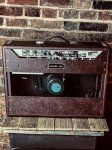 Excellent condition and in perfect working order. This amp is in near mint cosmetic condition and appears to have rarely been played. This reissue of the 1965 Deluxe Reverb features 1x12 Jensen speaker, 22 watts of power, all tube power and pre-amp section, reissue blackface control panel with black Fender skirted knobs with silver reflective tops, vintage style Fender baffle board, and original footswitch. This is a limited edition version with wheat colored grill cloth, oxblood covering and Jensen Special Design speaker. Great vibrato and real spring reverb. A faithful reinterpretation of the blackface Deluxe Reverb amp, the most recorded guitar amp model in history. Made in the USA!