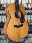 Excellent condition featuring 000 body size, solid torrified Adirondack spruce top with spruce X bracing and decorative soundhole rosette, mahogany back and sides, tortoiseshell grain pickguard and body bindings, mahogany C profile neck, paduak fingerboard with mother of pearl descending dot inlays, bone nut and saddle, 1 3/4" nut width, gold Recording King headstock logo, three per side Grover open gear vintage style tuning machines with butterbean knobs, gloss natural finish, and Guardian hard shell case.