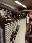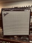Mint condition and in perfect working order featuring 45 watts of power, 4x10 Jensen P10R speakers, two channels (Normal and Vibrato), four inputs (two Normal and two Vibrato), reverb, tremolo, black Tolex covering, black face, black Fender amp knobs, silver grill cloth with Fender logo, and original foot switch.