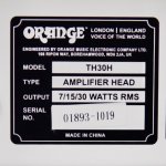 Excellent condition featuring 30 watts of power, two channels with single input, five preamp tubes (four 12AX7 and one 12AT7), four EL84 power tubes, half power switch, white metal faceplate with chrome handles and black Orange Logo and TH30 designation, black knobs, black metal corner caps, rubberized top handle, black Tolex covering with gold piping and white Orange branded footswitch.