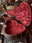 Excellent condition featuring single cutaway, Grand Auditorium body size, solid Koa top, laminated Koa back and sides, multi-bound top edges, single bound back edges, decorative abalone soundhole rosette, single ply black pickguard, striped ebony belly bridge, ebony bridge pins with pearl dots, compensated tusk saddle, mahogany neck, ebony fingerboard with small snowflake inlays starting at the third fret, tusk nut, Taylor peghead shape, rosewood peghead overlay with inlaid white Taylor logo, truss rod cover with decorative abalone inlay, three per side Taylor stamped sealed tuning machines, Taylor ES2 Expression System electronics with volume, bass and treble controls with black plastic knobs, two strap buttons, gold plated metal hardware and original brown Taylor badged hard shell case with purple plush lining.