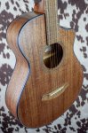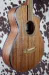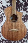 From Breedlove: Songwriters from Bob Dylan to Jeff Tweedy have made their point with small body all mahogany guitars. Instruments made from a single species have a unique voice, and Breedlove’s sustainably-sourced African mahogany speaks with a dry, warm authority that fairly screams Americana, and supports your singing without overpowering it. The soft cutaway, easy-bending short scale feel and Natural Sound electronics of the Wildwood Concertina Satin CE make it a mean little lead machine, too, with the ability to sit in a mix, or cut right through it. A simple, durable satin finish throughout puts an elegant guitar in your hands at the right price.