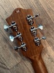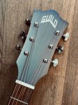 Concert/M size body, Solid Sitka spruce top with scalloped X bracing and Vintage Sunburst finish, pearl soundhole rosette, tortoiseshell grain pickguard, arched mahogany back, mahogany sides, white binding on the top and back body edges, mahogany C shaped neck, pao farro fingerboard with pearl dot inlays, 1 11/16" nut width, bone nut, Guild GBB1 open gear tuners with butterbean knobs, satin natural finish neck, back and sides, pao farro bridge with compensated bone saddle, nickel plated metal hardware, and DeArmond Tone Boss electronics with soundhole pickup and endpin jack.