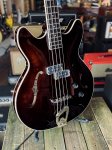 From the manufacturer: An iconic shape at an affordable price, Guild’s Starfire I Bass is a modern adaptation of the traditional Starfire Bass platform, exemplifying the features needed on a modern Hollowbody bass. Featuring a slimmed down, 2.4” body thickness, inward-shifted neck, short 30 ¾” scale length, and a 1 ½” nut width, the Starfire I Bass is a compact and accessible option for younger players, or those who want more freedom on stage. Stable tuning and easy adjustability are provided by the Tune-o-matic bass bridge, and the harp tailpiece adds a touch of Guild’s classic aesthetic, likening the bass to its upright ancestors. Guild’s own BC-1 BiCoil pickups adorn the bass, complete with hum resistant nickel covers and Alnico 5 magnet construction. Combined with the woody nature of semi-hollowbody tone and the volume and tone control, these pickups allow the player to dial in anything from modern, cutting bass tones to wooly, round, vintage tones. Pull up on the Volume Knob to reveal the push-pull vintage switch—a feature that adds presence with rolled down low frequencies, reminiscent of the parallel pickup configuration on vintage Hollowbody basses. Mahogany top, back, and sides in Vintage Walnut. All in a perfectly glossed polyurethane finish.